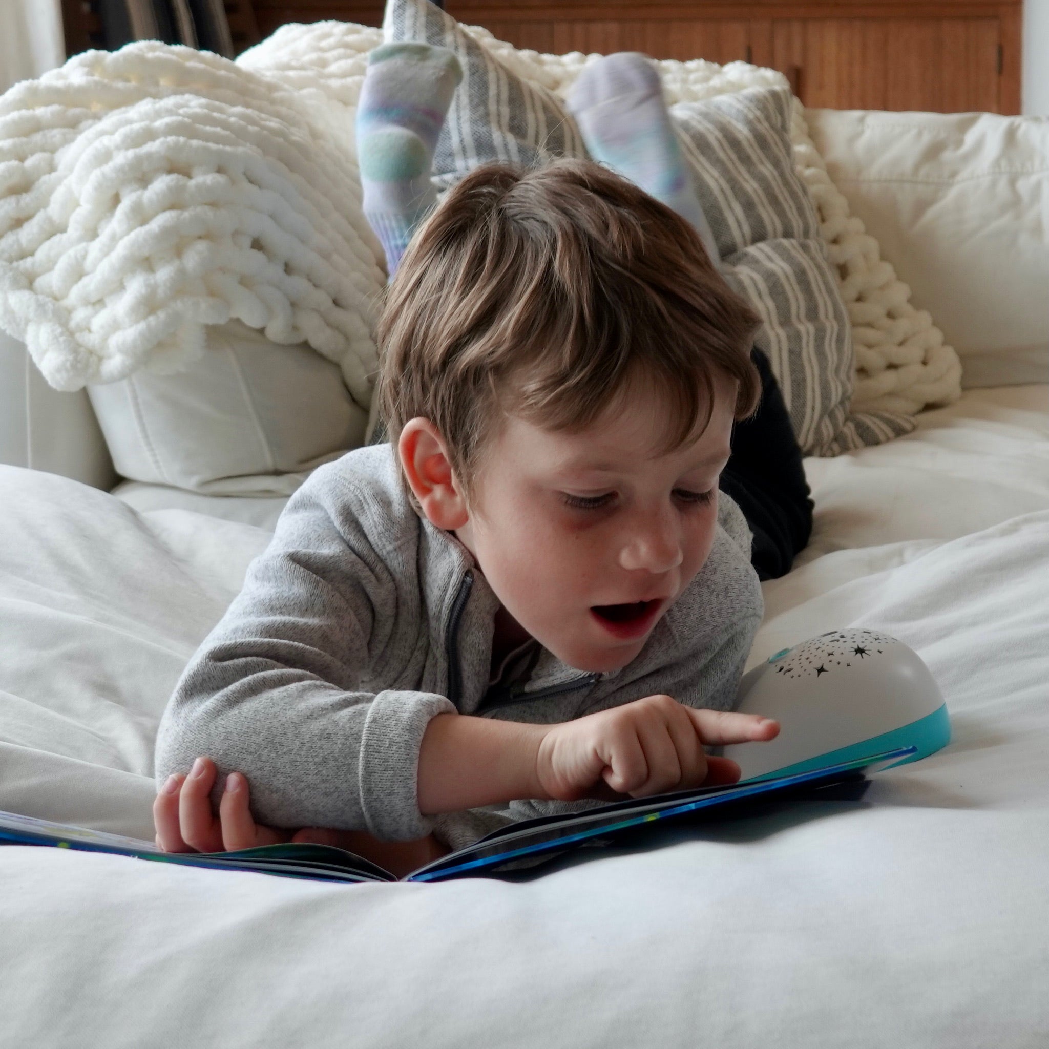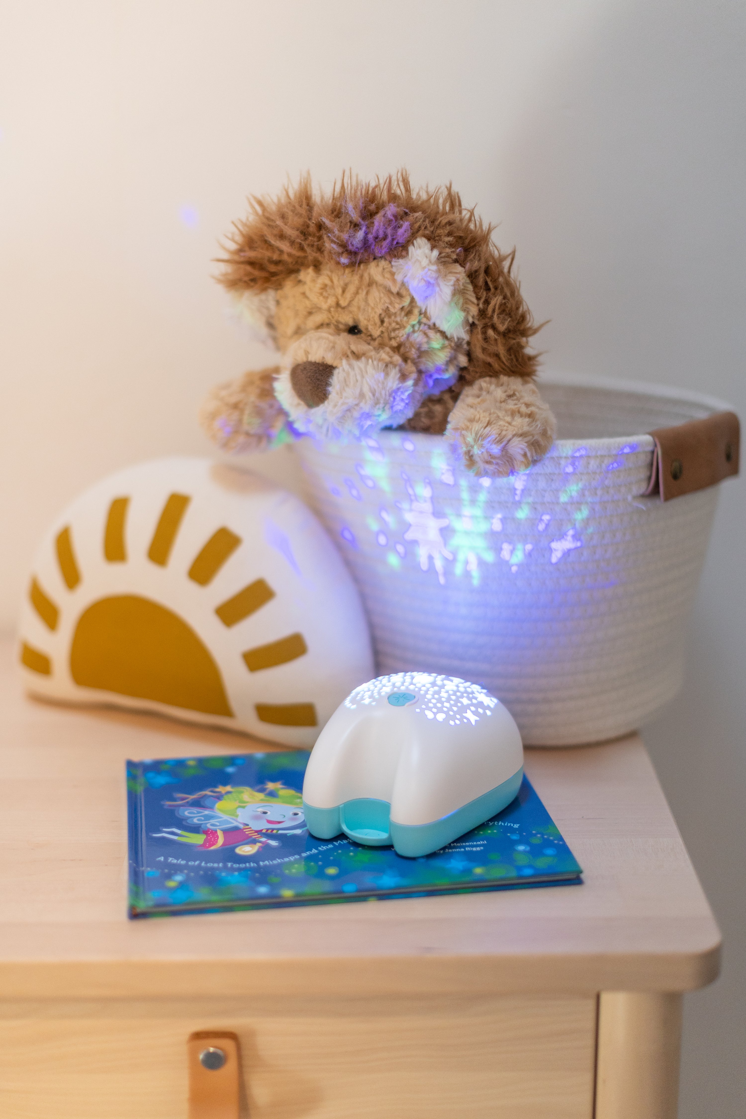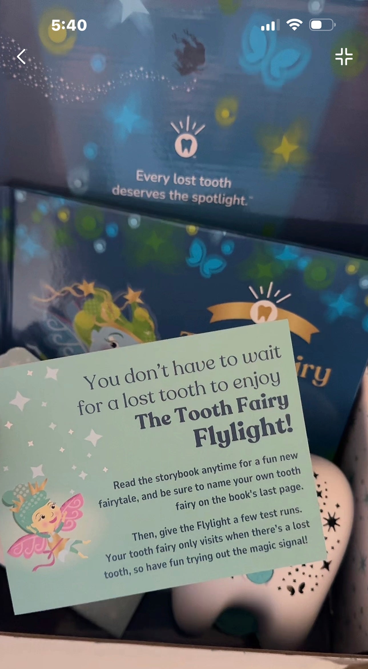 In the story, fairies watch for a special signal when a tooth is ready. The Tooth Fairy Flylight is that signal. With a single button press, children shine their Flylight to let their fairy know it’s time to visit, filling the room with a soft, color-changing glow. It’s a tiny ritual that makes the magic feel real.